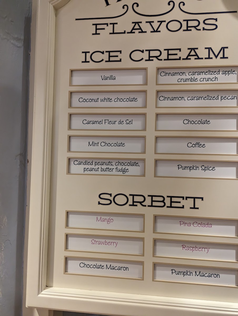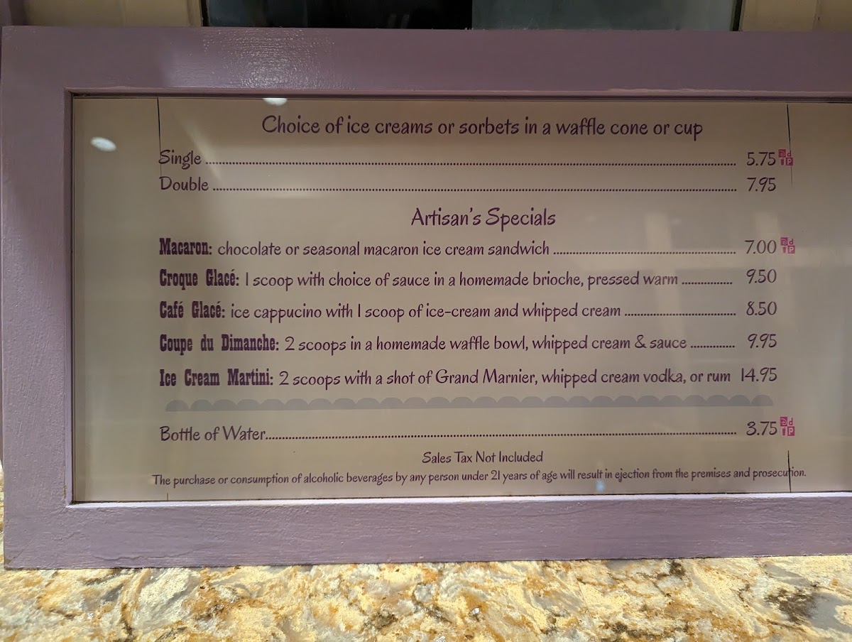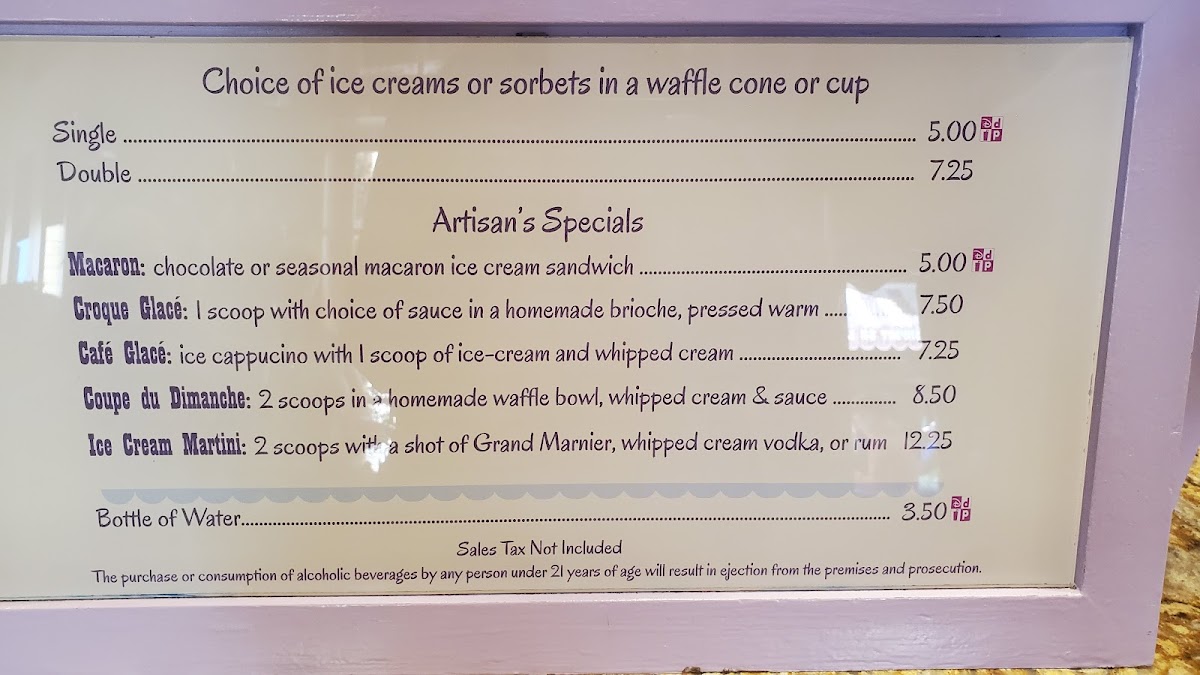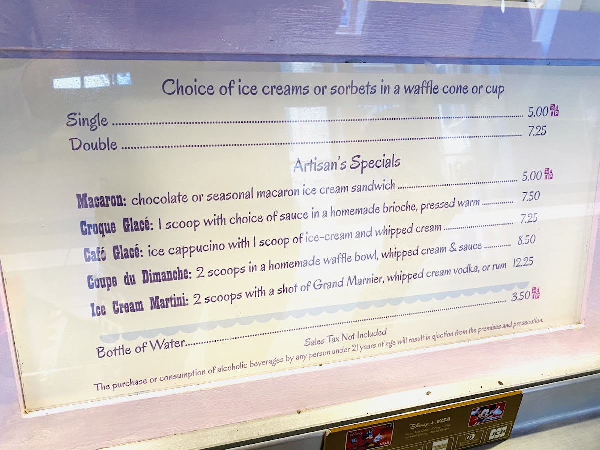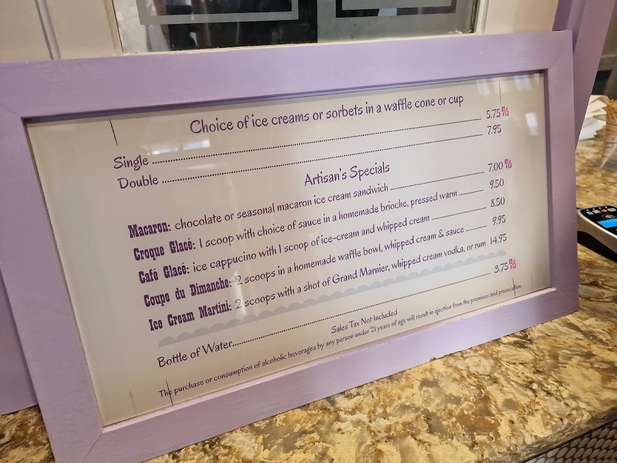 L'artisan Des Glaces at 200 Epcot Center Dr offers a menu that is both playful and indulgent, perfect for anyone seeking a sweet escape. Among the Artisan's Specials, the Macaron, Croque Glacé, Café Glacé, Coupe Du Dimanche, and Ice Cream Martini stand out for their elegant presentation and rich flavors. For a lighter touch, the Sorbet selection features refreshing options like Piña Colada, Raspberry, and Strawberry Mango, each bursting with vibrant fruitiness. The more decadent offerings include Caramel Fleur De Sel, Cinnamon With Caramelized Pecan, Chocolate Coconut White Chocolate, and Coffee, which showcase a thoughtful balance of textures and sweet-savory profiles. Overall, the menu at L'artisan Des Glaces combines classic French-inspired treats with imaginative twists, making each choice a delightful exploration of flavor.